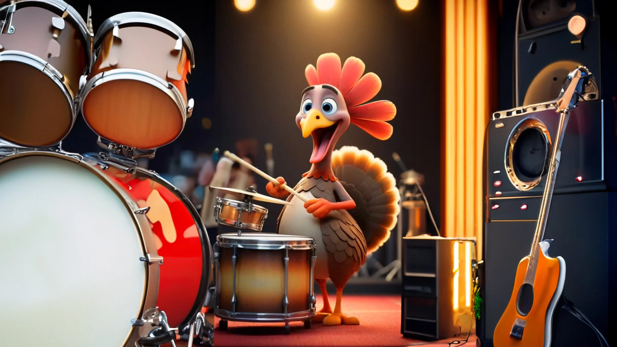Imagination Square Studios is excited to share the initial video trailer for a brand new storyline we have begun working on titled “Drumsticks”. The premise is a turkey named Drumsticks who is obsessed with rock n roll music, and it’s his dream to become a drummer in a rock band. So Drumsticks runs away from the farm where he currently lives, and becomes a roadie for a local band. That is, until Drumsticks encounters his big break! What adventures will Drumsticks discover on his drumming journey? Well, let’s just say, you ain’t seen stuffin’ yet!!!